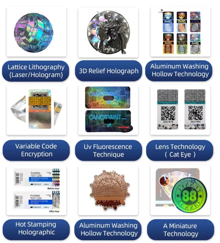 Ετικέτα κατά της μετατόπισηςέχει μοναδικό τρισδιάστατο αποτέλεσμα εικόνας και υψηλή ασφάλεια. Αυτό το είδος αυτοκόλλητου καταγράφει συγκεκριμένες εικόνες ή πληροφορίες σε τρισδιάστατη μορφή σε ένα ειδικό μέσο μέσω της αρχής της παρεμβολής λέιζερ, σχηματίζοντας ένα ολογραφικό πρότυπο που είναι δύσκολο να αντιγραφεί.