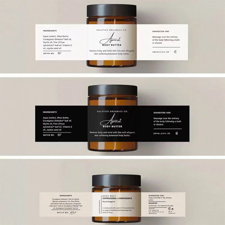 Η ετικέτα κρέμας προσώπου είναι μια ετικέτα ειδικά σχεδιασμένη για κρέμα προσώπου και είναι ένα απαραίτητο μέρος της. Η ετικέτα της κρέμας προσώπου είναι ένας αποτελεσματικός τρόπος για τους καταναλωτές να μάθουν σχετικά με τις πληροφορίες που σχετίζονται με τα προϊόντα (όπως τα συστατικά προϊόντων, οι μέθοδοι χρήσης, η ημερομηνία παραγωγής και η διάρκεια ζωής κλπ.) Και είναι επίσης ένα μέσο για τα εμπορικά σήματα να ενισχύσουν την εικόνα του προϊόντος τους και να ενισχύσουν την αναγνώριση της μάρκας. Οι ετικέτες της κρέμας προσώπου που παράγονται από το πακέτο JoJo όχι μόνο έχουν πληροφορίες σχετικά με την κρέμα προσώπου, αλλά και από υλικά υψηλής ποιότητας για να εξασφαλίσουν ανθεκτικότητα σε διαφορετικά περιβάλλοντα.