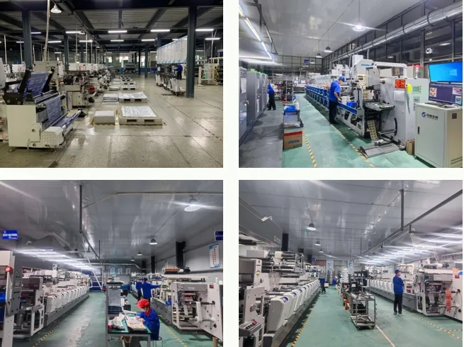 Η Jojo Pack Company διαθέτει εργοστάσιο που καλύπτει έκταση 18.000 τετραγωνικών μέτρων, με 7 πλήρως αυτόματες γραμμές παραγωγής, εξοπλισμένη με μια σειρά από προηγμένο εξοπλισμό, όπως μηχανές εκτύπωσης CMYK, ψηφιακές εκτυπώσεις, μηχανές σχισμής, μηχανές αναζωπύρωσης, μηχανές θερμής σφράγισης και κόπτες χαρτιού. Είτε πρόκειται για μια μεγάλη επιχείρηση είτε για μια μικρή και μεσαίου μεγέθους επιχείρηση, μπορούμε να ανταποκριθούμε στις ανάγκες τους OEM και ODM.