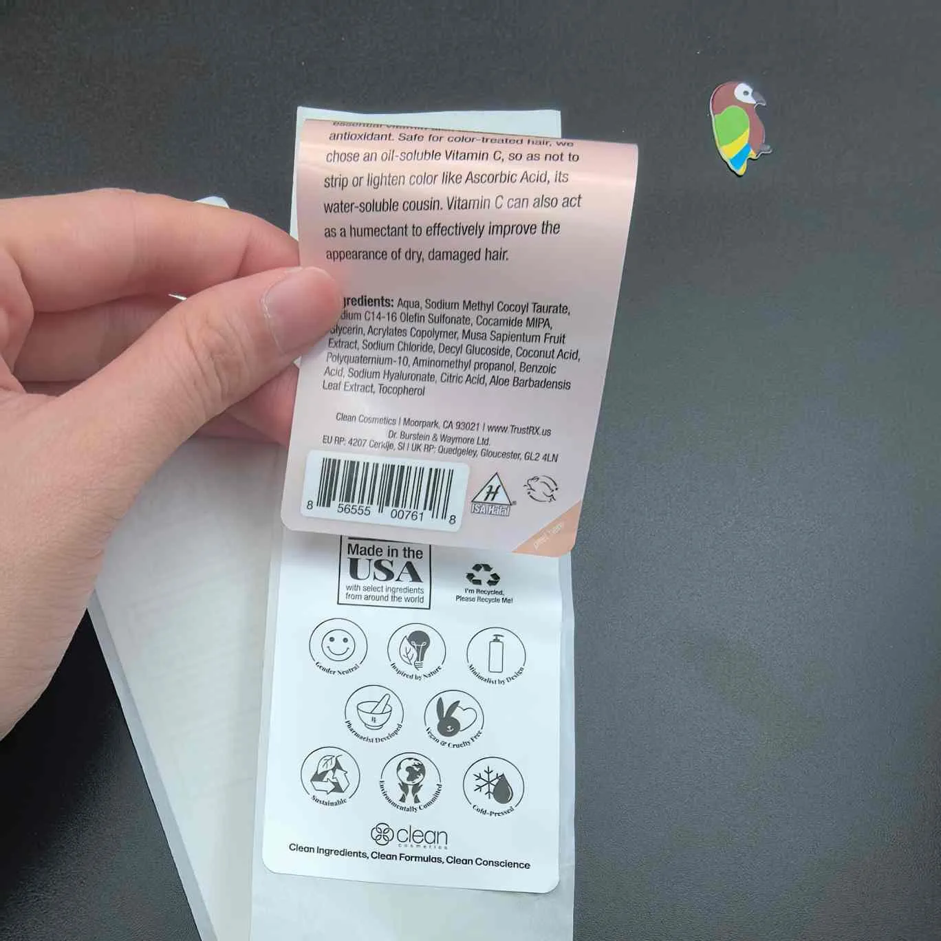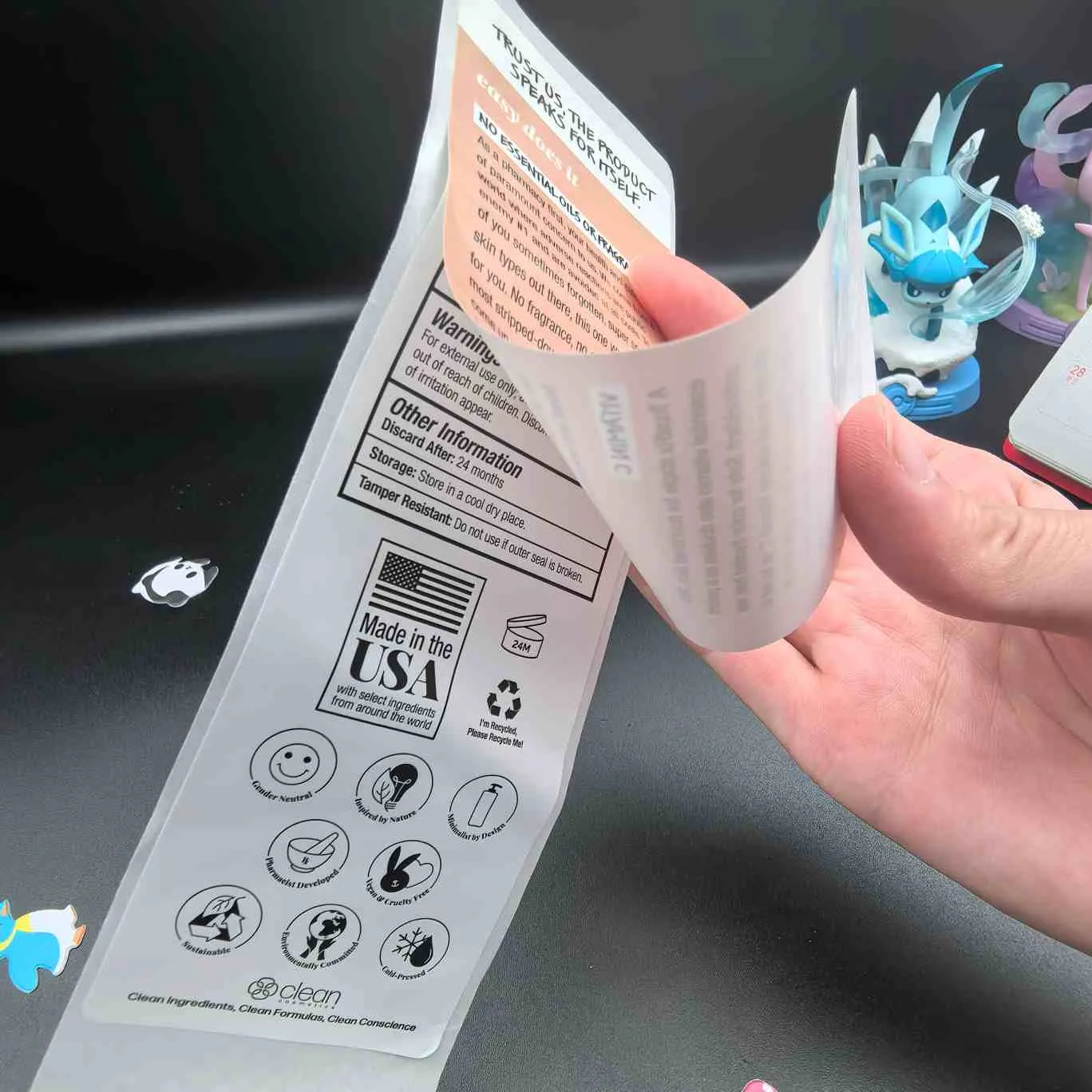 Τα καλλυντικά έχουν αυστηρές κανονιστικές απαιτήσεις για την αποκάλυψη πληροφοριών, όπως η υποχρεωτική καταχώριση συστατικών σύμφωνα με τους κανονισμούς του FDA ή της ΕΕ. Ταυτόχρονα, οι μάρκες πρέπει να μεταφέρουν τις έννοιες της επωνυμίας και τα σημεία πώλησης προϊόντων. Το MultiLayer για ετικέτες καλλυντικών εξισορροπεί τέλεια αυτές τις δύο ανάγκες, συμμορφώνονται με τους κανονισμούς παρέχοντας πλήρεις πληροφορίες και βοηθούν τις επωνυμίες να ενισχύσουν την ανταγωνιστικότητα των προϊόντων μέσω οργανωμένης και ελκυστικής παρουσίασης πληροφοριών.