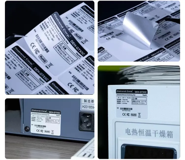 PET λευκό/ματ ασημί: Ανθεκτικό στη θερμότητα έως 150℃, κατάλληλο για πινακίδες σε οικιακές συσκευές και τροφοδοτικά.
