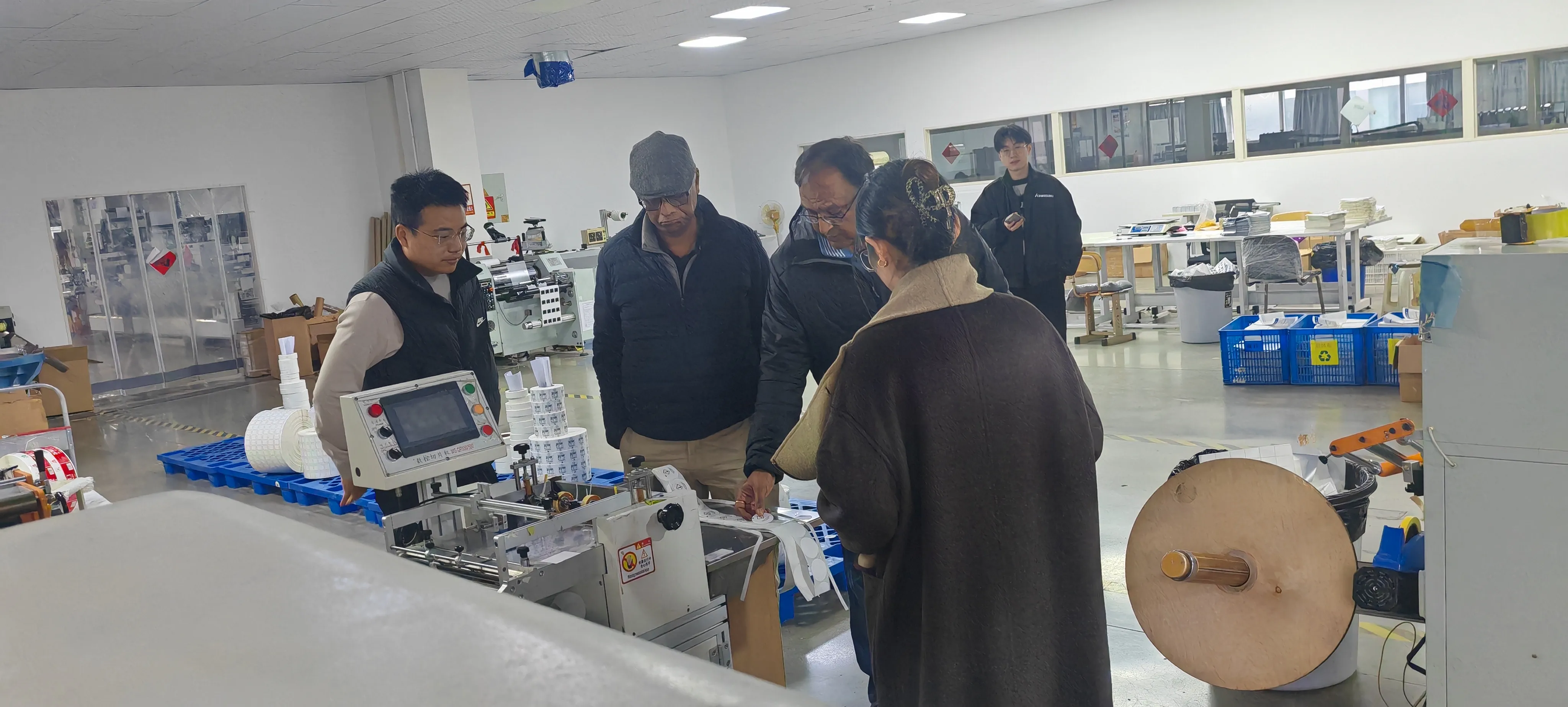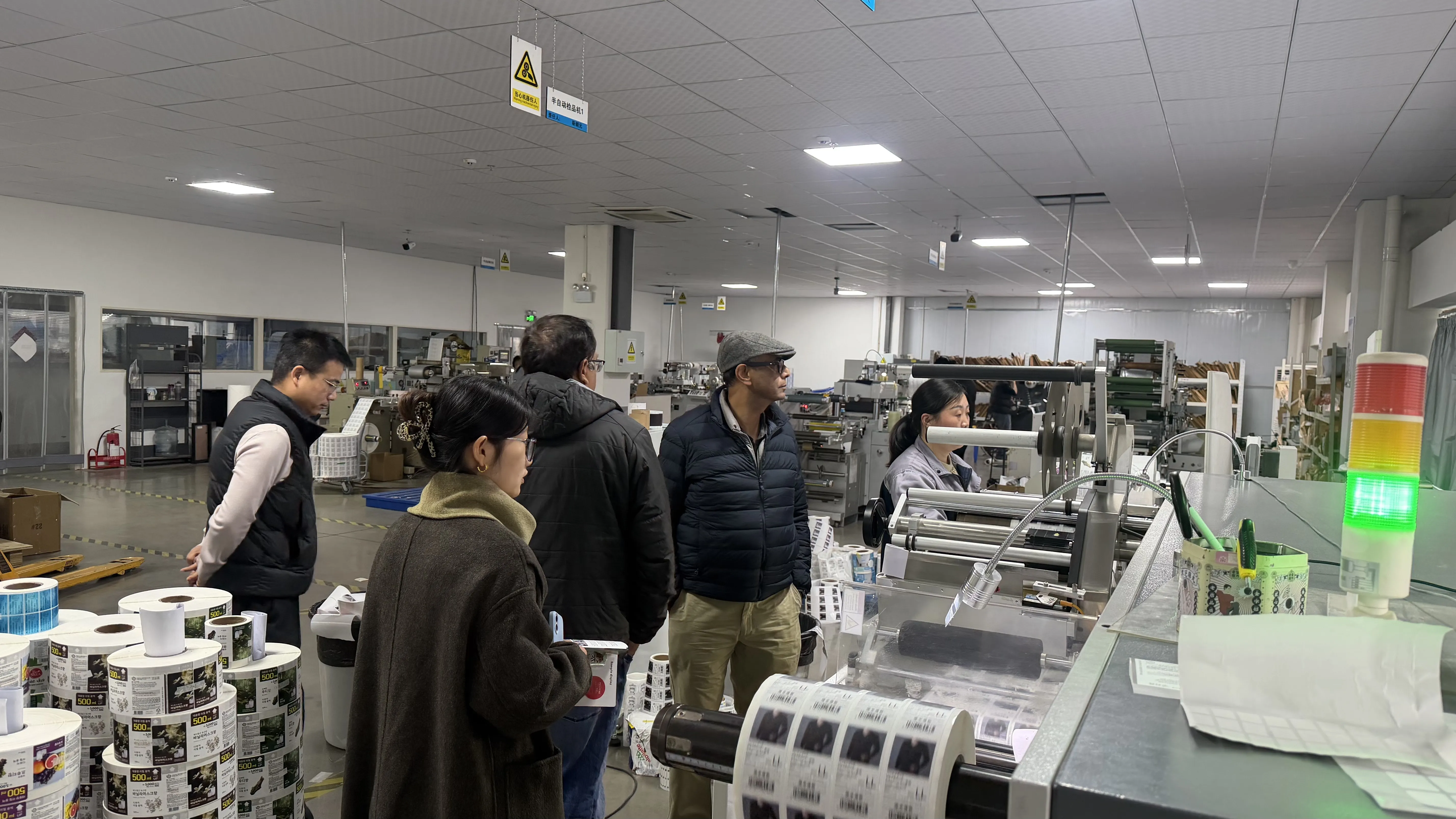 Στο εργαστήριο παραγωγής, οι πελάτες παρακολούθησαν από κοντά την αποτελεσματική λειτουργία της γραμμής παραγωγής αυτόματης εκτύπωσης, επαίνεσαν ιδιαίτερα το φιλικό προς το περιβάλλον μελάνι, την τεχνολογία κοπής υψηλής ακρίβειας και τον εκλεπτυσμένο έλεγχο παραγωγής που υιοθετήθηκε από την εταιρεία μας και πίστευαν ότι η εταιρεία μας έχει τυποποιημένες διαδικασίες παραγωγής και ισχυρή τεχνική δύναμη, που μπορεί να καλύψει πλήρως τις απαιτήσεις υψηλής ποιότητας για προϊόντα συσκευασίας ετικετών.