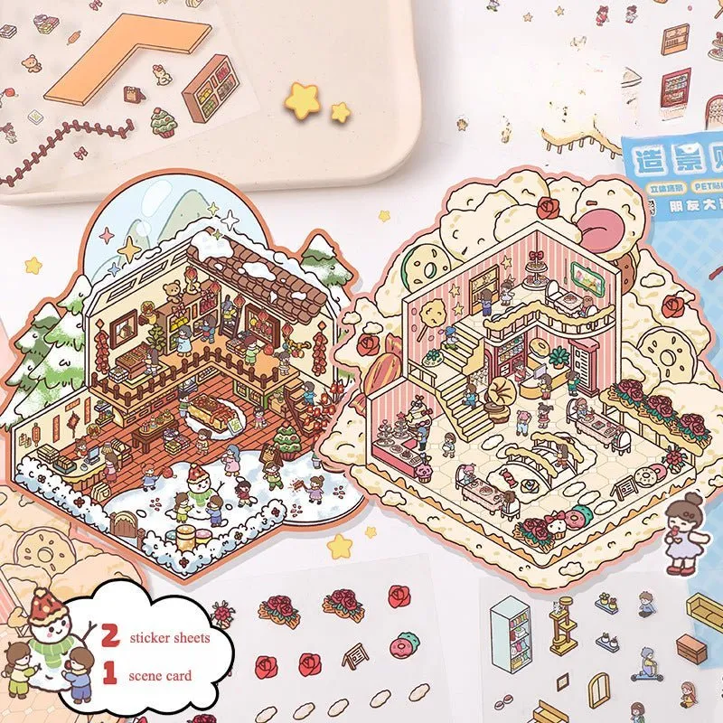 Τα παιδιά μπορούν να συνδυάσουν ελεύθερα διάφορες σκηνές όπως η κουζίνα, το υπνοδωμάτιο και ο κήπος για να χτίσουν τα δικά τους σπίτια ονείρου, όπως και το κτίριο με μπλοκ. Τα αυτοκόλλητα μπορούν γρήγορα να ανακουφίσουν το άγχος μέσω διαδραστικών μεθόδων όπως η επικόλληση και η στοίβαξη.