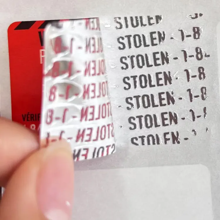 Σημαντική επίδραση κατά της παρακολούθησης:Μόλις απομακρυνθεί παράνομα η ετικέτα, η λέξη "κενή" θα είναι σαφώς ορατή και δεν μπορεί να αποκατασταθεί, επιτρέποντας την άμεση κρίση για το αν το προϊόν έχει παραβιαστεί, καθιστώντας δύσκολη τη μίμηση των παραχαράκων.